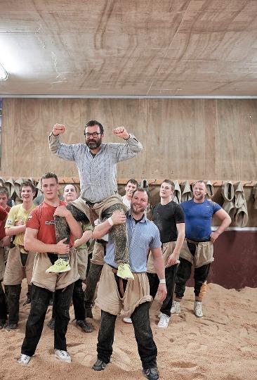 Max Küng, Reporter, Kolumnist, Autor mehrerer Bücher wagt einen Selbstversuch: In Willisau steigt er mit dem Schwinger Müller Alain ins Sägemehl. Und erfährt, wie es sich anfühlt, wenn man hundert Kilo schiere Muskelmasse ausheben möchte: Man wird ausgehoben.